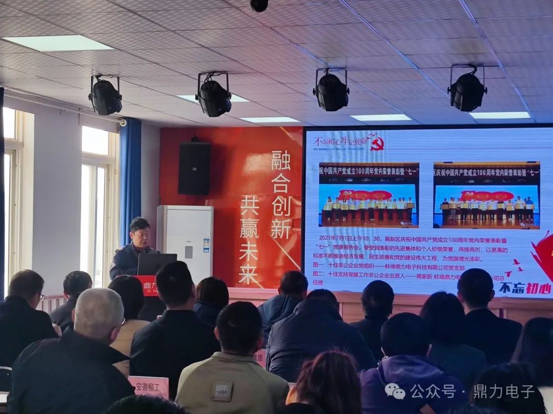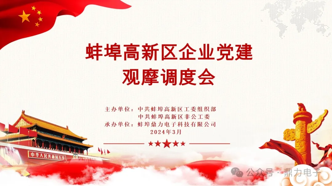 2024年3月28日下午三點(diǎn),在蚌埠鼎力電子科技有限公司會(huì)議室召開蚌埠高新區(qū)企業(yè)黨建觀摩調(diào)度會(huì),會(huì)議由張躍江書記主持,會(huì)議議程總共分為六個(gè)部分:鼎力電子黨支部匯報(bào)黨建工作開展情況;全區(qū)黨建工作示范點(diǎn)命名文件并授牌;區(qū)非公辦解讀黨建共建“七個(gè)一”工作要求;黨建指導(dǎo)組組長(zhǎng)匯報(bào)工作開展情況;13個(gè)企業(yè)黨建工作示范點(diǎn)交流發(fā)言;會(huì)議總結(jié)點(diǎn)評(píng)。