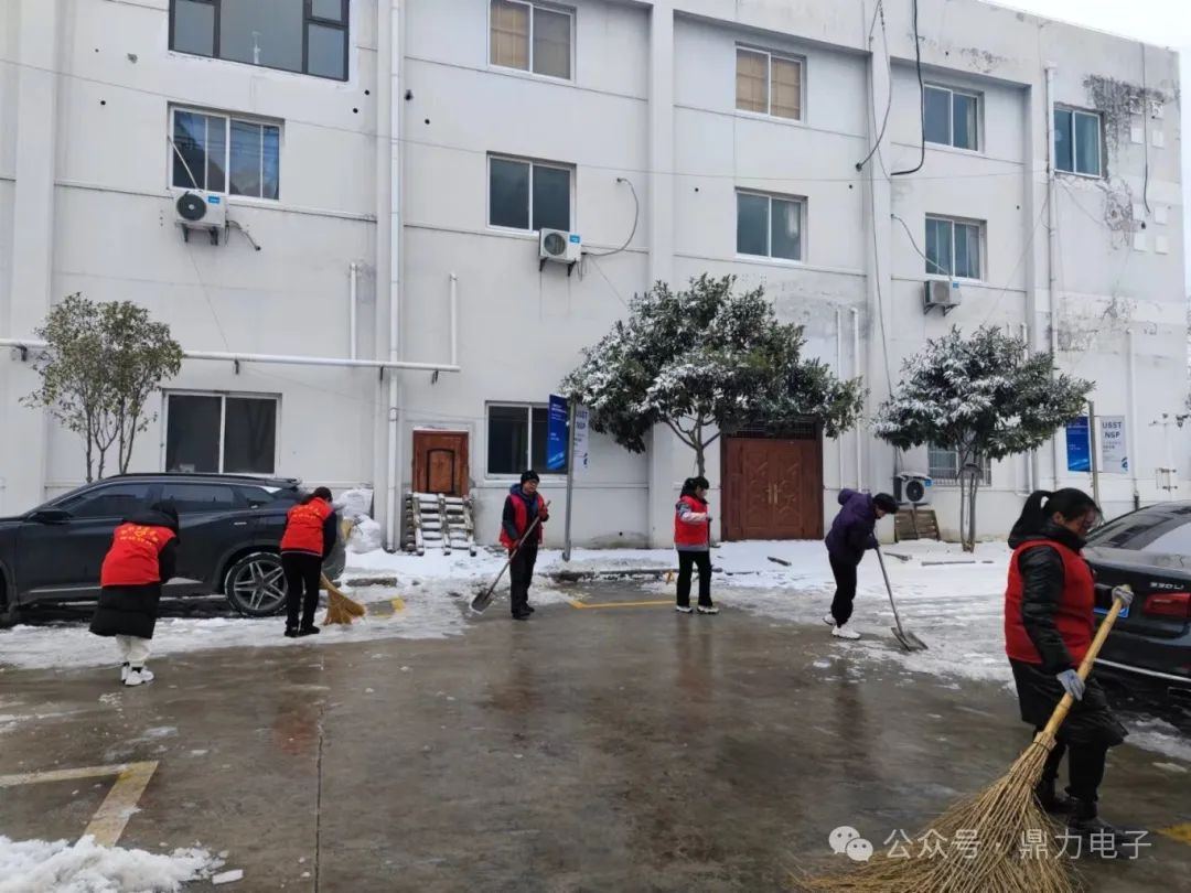 在掃雪過程中,黨員同志奮勇當(dāng)先,青年志愿者沖鋒在前,有的用鐵鍬向兩邊清理積雪,有的在后面奮力用掃把掃雪,積雪濺在衣服和鞋上也毫不在意,掃雪現(xiàn)場一片繁忙景象。一個(gè)多小時(shí)后,鼎力電子門前道路及車棚被清掃得干干凈凈。